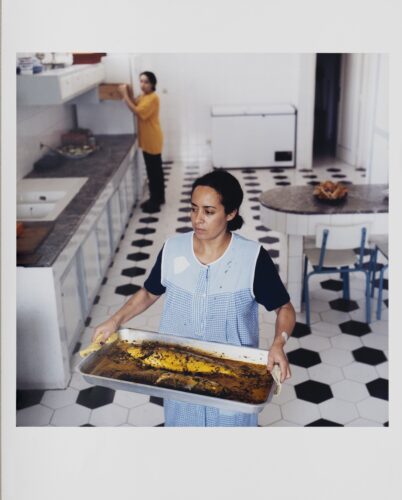 Außerdem am Stand: eine frühe, achtteilige Fotoserie der französisch-marokkanischen Künstlerin Yto Barrada (Jahrgang 1971) mit dem Titel „Petites formes élémentaires (figures 1-8)“ aus dem Jahr 1998. Yto Barrada, die auf der kommenden Biennale Venedig den französischen Pavillon bespielen wird, porträtiert in dieser Serie die beiden Köchinnen ihrer Tante in Tanger. Zwei Frauen, von denen sie elementare Formen gelernt hat, sowohl, was die Aufteilung der Küchenwelt in geometrische Muster, als auch, was den respektvollen Umgang unter Frauen und Mädchen betrifft: die Weitergabe von Wissen, Umgangsformen und Geschichten. Die Serie wurde nie zuvor ausgestellt. Auf der Art Antwerp ist diese Arbeit von musealer Qualität jetzt für 90.000 Euro im Angebot (Auflage: 3).