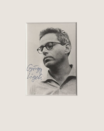 Ligeti, György, Porträtfoto mit eigenh.ndiger Unterschrift des Komponisten, Ohne Ort und Datum, Musikantiquariat Adam Bosze, Budapest, ANTIQUARIATSMESSE STUTTGART 2026