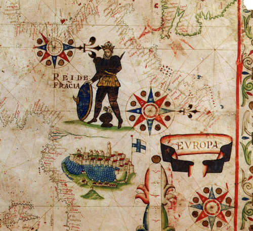 Portolan by Joan Oliva, A wedding gift for King Louis XIII Ausschnitt, 1615, Antiquariaat Sanderus, Gent, ANTIQUARIATSMESSE STUTTGART 2026
