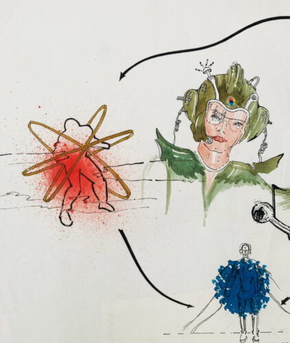Zu den jüngeren Händlern gehört Roger Sonnewald. Er betreibt einerseits eine Galerie in München, andererseits führt er in Tübingen das traditionsreiche Antiquariat Heckenhauer, welches 1823 gegründet wurde und bereits seit 1880 im Besitz der Familie Sonnewald ist. Es gilt als eines der ältesten Antiquariate Deutschlands. Der Schriftsteller Hermann Hesse absolvierte dort seine Buchhändlerlehre. Nach Stuttgart bringt Roger Sonnewald unter anderem einen Vorentwurf für das Plattencover des Albums „Radio-Activity“ der Düsseldorfer Avantgardeband Kraftwerk aus dem Jahr 1972 mit. Die Mischtechnik aus Zeichnung und Collage stammt von Emil Schult, einem Meisterschüler Gerhard Richters, und wird für 3.800 Euro angeboten.
