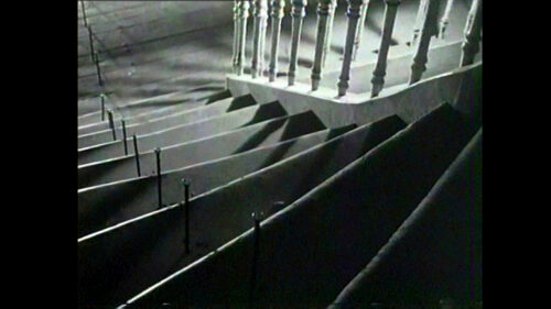 Den von dem amerikanischen Architekten Richard Meier entworfenen Neubau des Arp Museums erreicht man, indem man vom unten im Bahnhof Rolandseck gelegenenEingang bis ans Ende eines in die felsige Uferpartie des Rheins hineingetriebenen Fußgängertunnels geht. Dort, direkt vor den Aufzügen, die einen dann in die eigentlichen Ausstellungsräume hinauf transportieren, platziert Kuratorin Jutta Mattern, die sich mit dieser Schau übrigens in den Ruhestand verabschiedet, den nur wenige Minuten langen S/W-Film „Die Treppe“ aus dem Jahr 1964.